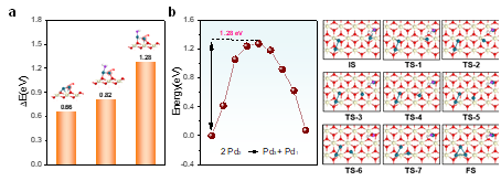 4.H2O或H2O解离的*OH吸附在双钯位点上对其迁移和聚集的影响