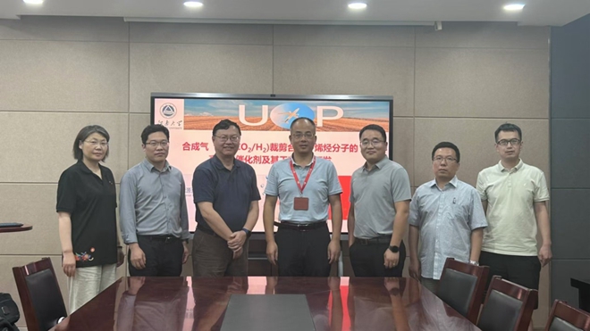 ,并就共同关心的碳基资源利用科学与技术前沿进行讨论表示热烈的欢迎。随后,刘小浩介绍了其在石油炼制、加氢制氢、高分子合成、煤化工/天然气化工(碳一化学),以及有机合成等领域的工业生产、科研和技术开发主要经历,并介绍了团队成员胥月兵老师、刘冰老师的主要科研经历、在团队的任务分工和工作目标,以及近十年来团队在合成气转化(费托合成)、二氧化碳资源化利用,以及低碳烷烃高值化催化转化等方向取得的重要研究进展。同时,他也简要介绍了与中国石化、日本力森诺科控股公司和国家能源集团等国内外公司联合开展技术开发的相关情况。刘小浩高度评价了霍尼韦尔UOP公司在炼油、石化和天然气加工领域的工艺技术、催化剂、吸附剂等方面的全球领先地位,对UOP技术助力90%全球可生物降解洗涤剂、60%全球汽油、60%全球专产丙烯、60%全球对二甲苯、50%全球可再生燃料,以及每年捕集1500万吨二氧化碳的技术领域领军企业表示由衷的赞叹。他详细询问了其感兴趣的课题和方向在UOP公司的研发进展情况,表示团队将在近期启动生物质规模化制可持续超清洁燃料和高值化学品的技术方案实施。