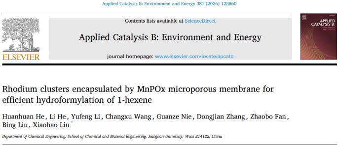 这一成果近期以题为“Rhodium clusters encapsulated by MnPOx microporous membrane for efficient hydroformylation of 1-hexene”发表在Applied Catalysis B:Environment and Energy(DOI:10.1016/j.apcatb.2025.125860)期刊上。91视频