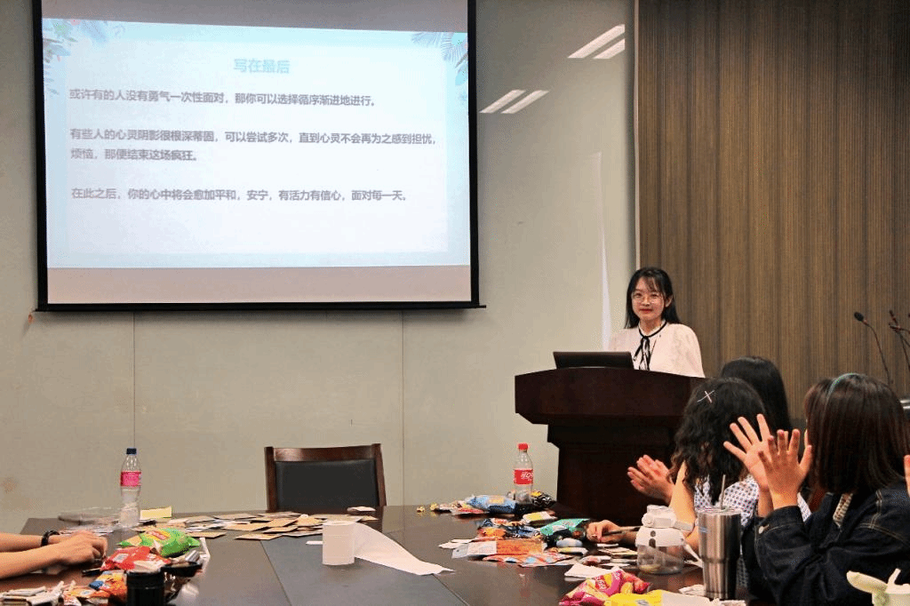 在知识问答环节中,主持人张亦喆提前准备好心理健康相关的题目分享给大家,大家分成几个小组竞争答题,在最后结算的分数中优胜的小组收到了小奖品。获胜的同学既开心于胜利,又表示学到了不少心理学常识。