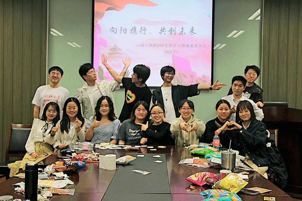 为进一步加强本实验室同学的心理健康建设,宣传普及心理健康知识,深入开展心理健康教育,保障疫情期间同学们的身心健康和谐,2022年5月15日下午,国工楼B1101实验室的同学们在心理委员王阳和张亦喆的组织下,在国工楼B3111会议室开展了心理健康座谈会。