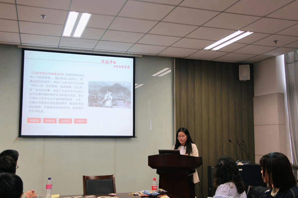 读书分享环节中几位同学为大家分享了他们近日的阅读成果:郑慧同学分享了《习近平的七年知青岁月》讲述了习近平总书记当年"苦其心志、劳其筋骨、饿其体肤、空乏其身”的历练故事,再现了习近平总书记知青时期的艰苦生活和成长历程。