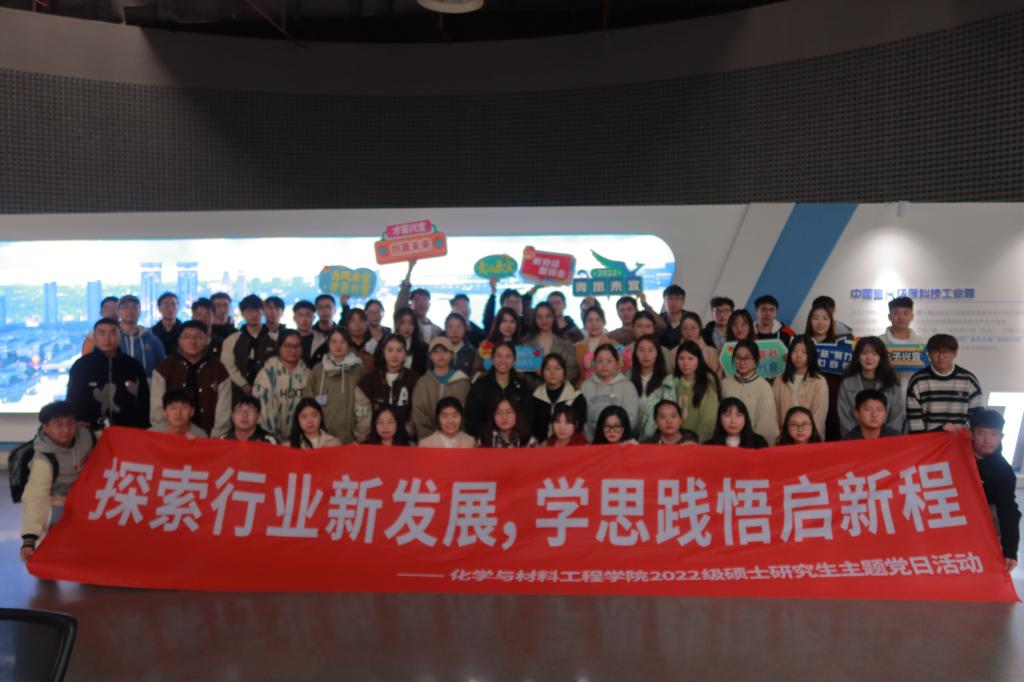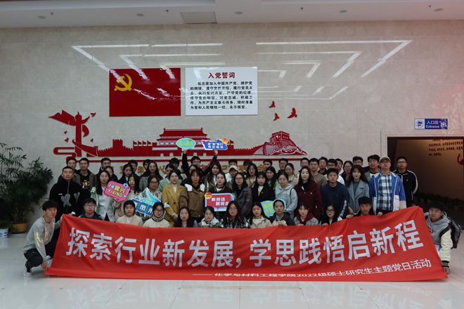 用脚步丈量大地,汲取前行力量。通过此次主题党日活动,化工学子了解了新材料新技术及材料专业领域的发展,加强了党员对党史更为深刻的认识,激发党员爱国爱党的热情和砥砺奋进新征程的勇气和信心。引导全体党员传承红色基因,坚定理想信念,汲取奋进力量,牢记一名党员的初心与使命,牢记一名化工学子的责任与担当,以专业素养争担科创强国之任,以科研能力筑牢科技兴国之梦。希望研究生党员如党的二十大主题一般,自信自强、守正创新、踔厉奋发,勇毅前进,为全面建设社会主义现代化国家、全面推进中华民族伟大复兴而团结奋斗。