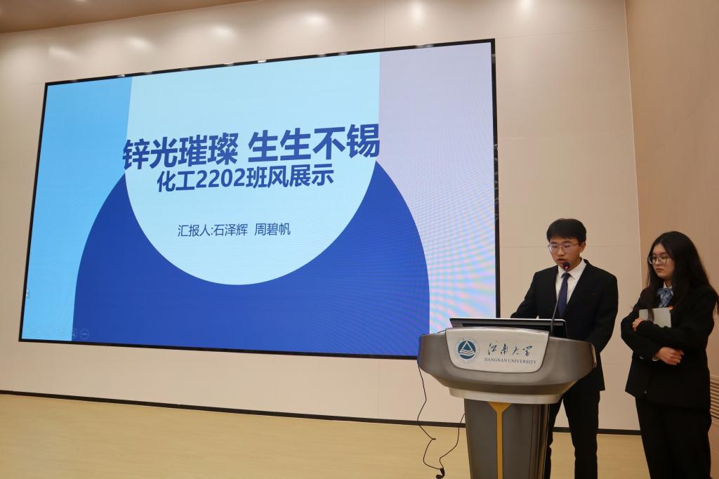 活动开始,2022和2021级本科班级按应化系、材料系、化工系依次上台进行班风建设PPT展示汇报与答辩。各班答辩代表们围绕集体精神、班级学风、未来展望等多个方面进行讲解,充分展示了各班班风建设成果。展示过后,评委老师进行点评并针对性提出宝贵意见,为各班日后的班风建设点亮明灯。