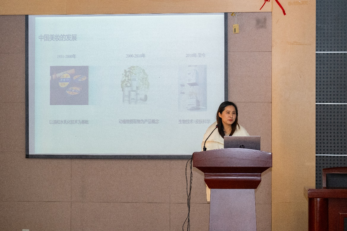 化工学院于12月26日在化工楼B329大会议室举办了益海嘉里‘学习美’活动之美丽“妆点”青春化妆品学术讲座。本次讲座邀请了化工学院化妆品方向资深配方师陈凤凤老师,为同学们带来了一场关于化妆品成分配方及成品趋势发展的学术盛宴。
