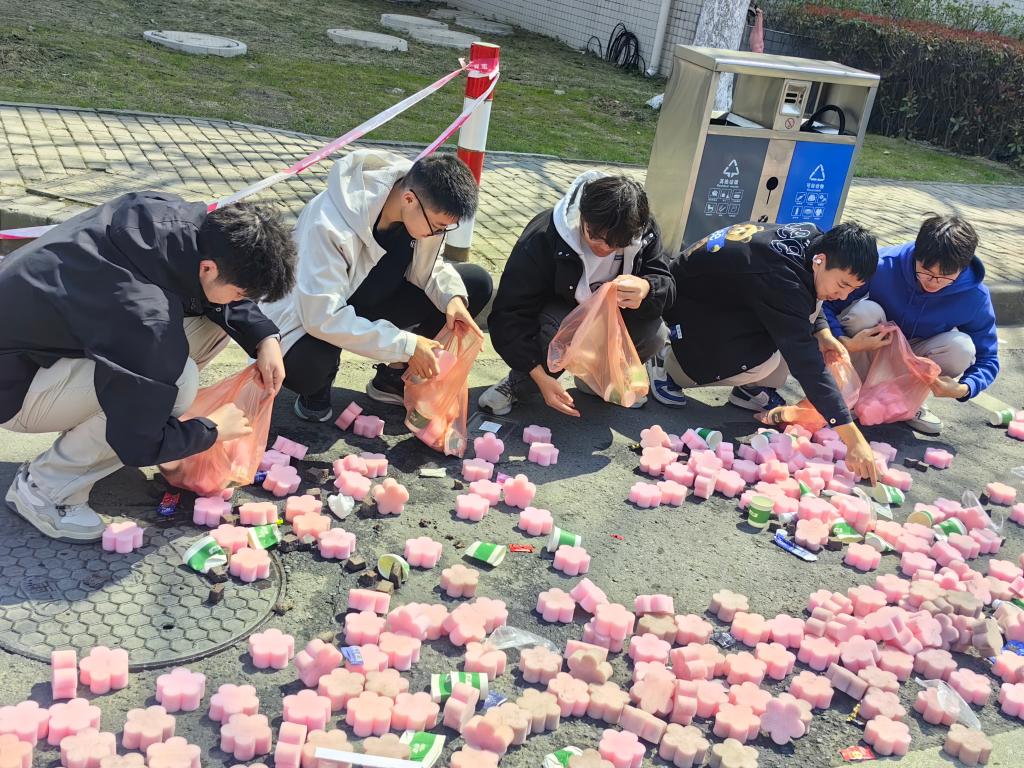 赛道后,应化2401团支部的同学们迅速按照宿舍成员四人分组,在应化2103团支部的学长学姐们带领下全身心投入到志愿服务中。整个过程全员神情专注、分工有序、团结协作,俯身劳作的身影与晨光交织,以极高的效率完成了峨眉山路和三江路人行道上的垃圾清理工作,给遍地狼藉的道路带来一份干净整洁。