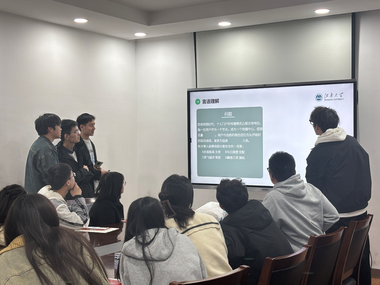 讲座伊始,吕洪刚从招录政策、职业发展、薪酬福利等维度展开专业分析。在区域招考政策解读环节,吕洪刚纵向梳理上海、江苏、浙江等热门考区的招录时间轴,横向对比长三角的岗位待遇差异,通过风趣、详细地分析,助力学生精准定位报考区域。同时,针对多地区报考可能存在的时间统筹问题,吕洪刚为同学们现场详解公务员考试的全流程管理方案。备考策略指导环节,吕老师深度解构初试和复试各大版块的命题种类和考察方式,并给出了实用且具有针对性的备考建议。在最后的互动阶段,同学们积极参与考公相关习题的问答,现场学习氛围浓郁。