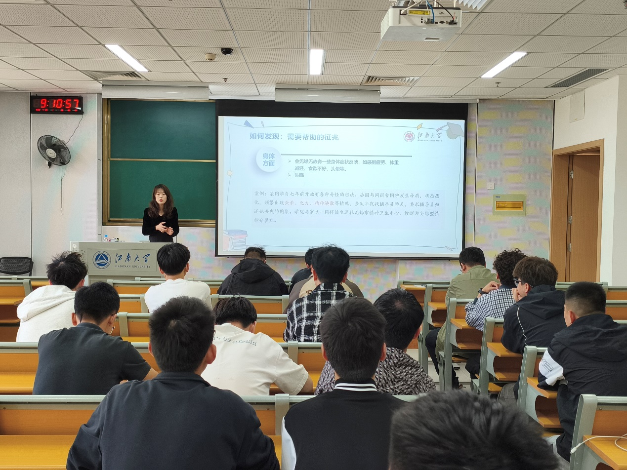 在宜兴校区知行楼C102教室举办“健康守门员”赋能计划专题培训暨五一假期安全教育大会。培训以“强化风险防范意识,提升心理护航能力”为主题,由研究生辅导员李晓洁主讲,宜兴校区全体网格员参与培训。