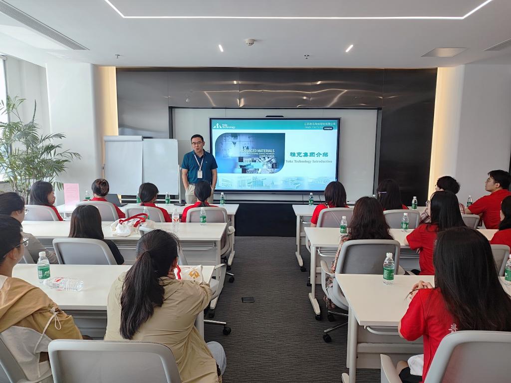 7月18日,活动进入第二阶段。师生们走进江苏国信协联能源有限公司,企业负责人向大家详细介绍了公司的运营模式、技术创新以及在能源领域的行业地位。同学们结合专业所学,就新能源材料领域的前沿问题展开热烈探讨。随后,师生们参观了江苏先科半导体新材料有限公司和锐嘉(宜兴)科技有限公司。在企业技术人员和管理人员的带领下,同学们深入生产一线,详细了解了半导体新材料和相关科技产品的研发、生产过程,与企业代表进行了深入交流,对行业发展趋势和人才需求有了更加清晰的认识,多名学生现场提交简历,达成就业意向。