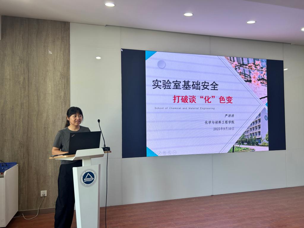 实验室安全管理负责人严洋洋主讲,2025级化工方向硕士与全体新生博士生到场参加,本次活动由辅导员高静主持。