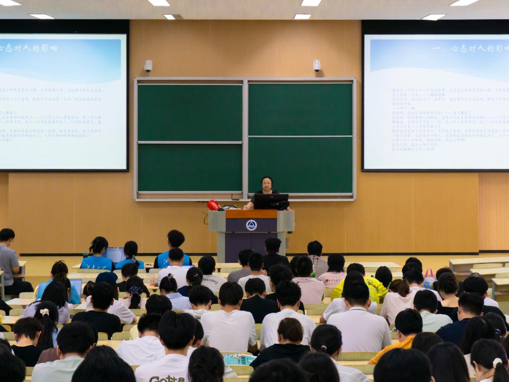 肖凌燕副教授以《阳光心态成就美好人生》为主题,结合其近20年的心理咨询经验和极具启发性的心理学实验故事,从情绪管理、压力应对、人际交往等方面出发,引导新生运用心理知识更好地认识自己、理解他人,树立积极心态,提升心理调适能力。她强调,心理健康是学业成就和人生发展的重要基石,她鼓励同学们主动关注自我情绪变化,学会在科研与生活中寻找平衡。