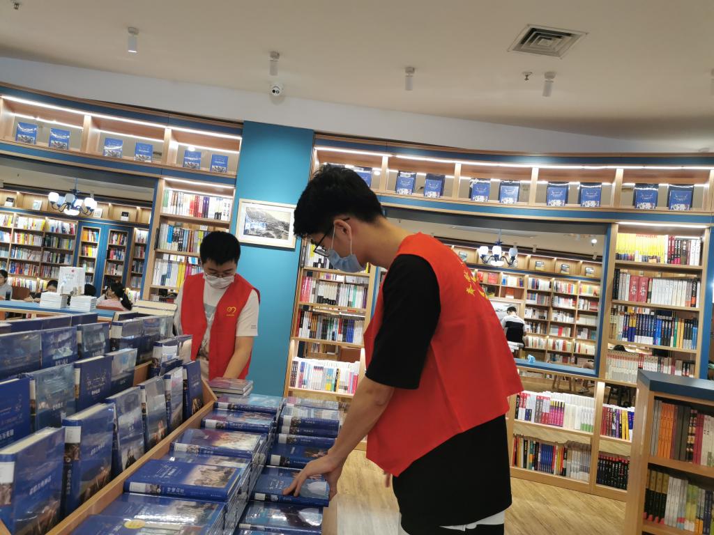 在第一次志愿者服务中,姚桢和童创益以及其他志愿者作为新华书店的引导和伴读工作人员,主要帮助和引导读者找到所需要的书籍,整理书籍,维持书城内部的秩序,这要求志愿者要非常熟悉书城内部书籍的分布,同时也要有足够的耐心和良好的沟通表达能力。而志愿者的另一项重要工作就是帮助一些阅读障碍者完成书籍的阅读,在服务期间,志愿者团队帮助了许多来寻求知识的陌生人,他们对知识的渴求,对书籍的向往也对两位同学产生了潜移默化的影响,主动接受书香氛围的熏陶。