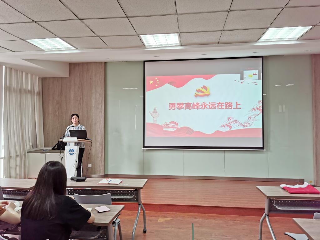 最后,学院党委副书记田卫平同志以“绽放化工正能量,凝聚报国大担当”为题为全体师生党员作了一堂生动的微党课。她从“点赞爱国力行的江南化工人”、 “携手奋斗路上的江南化工人”、“寄语即将启航的江南化工人”三个角度着手,介绍了疫情期间化工学院广大校友单位的捐赠义举,任课教师线上教学的负责担当,志愿服务抗击疫情学生的青春力量,点赞了一批批优秀的化工人;讲述了全国数千万党员在党中央的坚强领导下和全国一盘棋的有效动员机制下,坚持以人民为中心的崇高价值观迅速有效阻击疫情,体现了中国特色社会主义的巨大优势;最终寄语广大党员师生要始终具有“高理想、追卓越、肯担当”的优秀品质,将个人“小我”融入中国特色社会主义事业的“大我”之中!