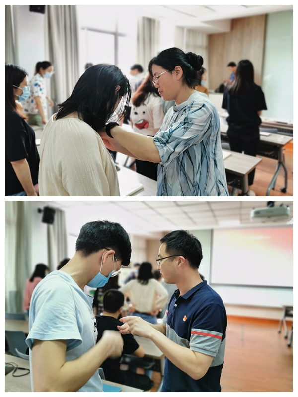 为新发展预备党员佩戴党员徽章