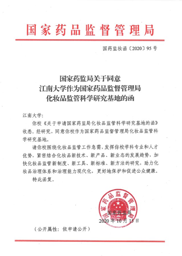 作为国家药品监督管理局化妆品监管科学研究基地的函》,国家药监局正式批准91视频