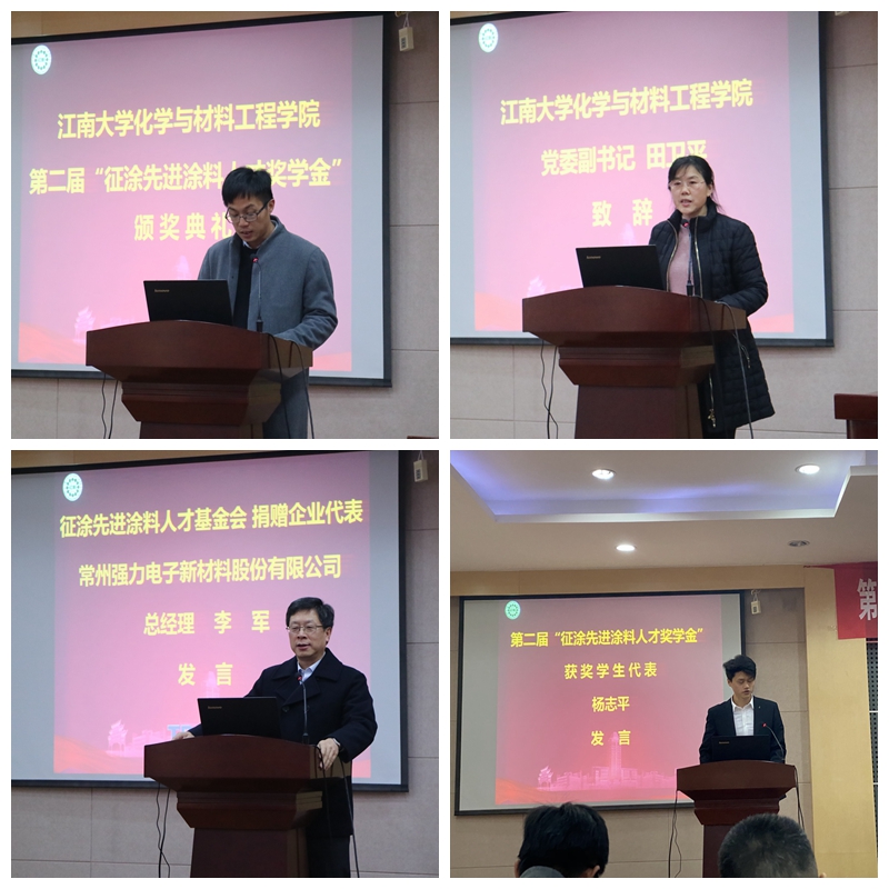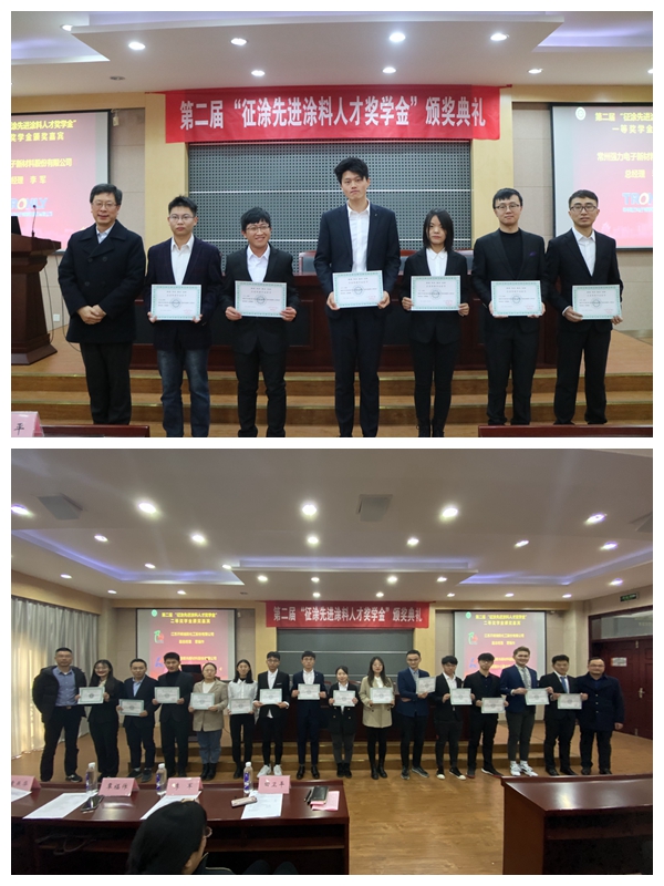 第二届“征涂先进涂料人才奖学金”颁奖典礼在化工楼B329会议室举行。
