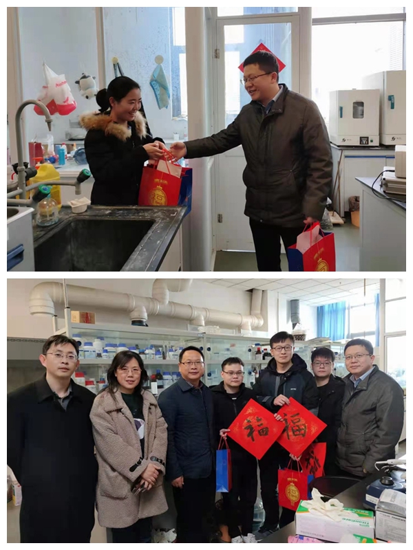 学院领导深入实验室、宿舍,认真查看了留校学生的生活和学习环境,详细询问了同学们家乡的疫情情况和在校学习生活情况,叮嘱大家注意人身财产安全,互相关心关爱,和家长、老师保持联系。并鼓励留校的同学们要做好个人假期规划,学习好知识,锻炼好身体,充分利用寒假时间给自己多“充电”,练就过硬本领,努力成为优秀的人才。学院领导向留校学生送上了由辅导员书写的新春福字和新年礼包,并祝愿同学们新年快乐,学习进步。