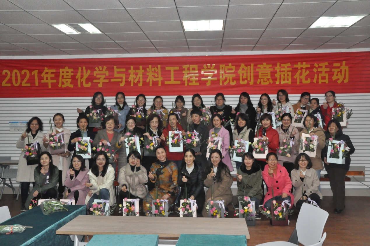 女教职工的业余文化生活,满足女教职工的精神文化需求,提升艺术文化素养,2021年3月17日下午,学院分工会组织女教职工开展插花活动。