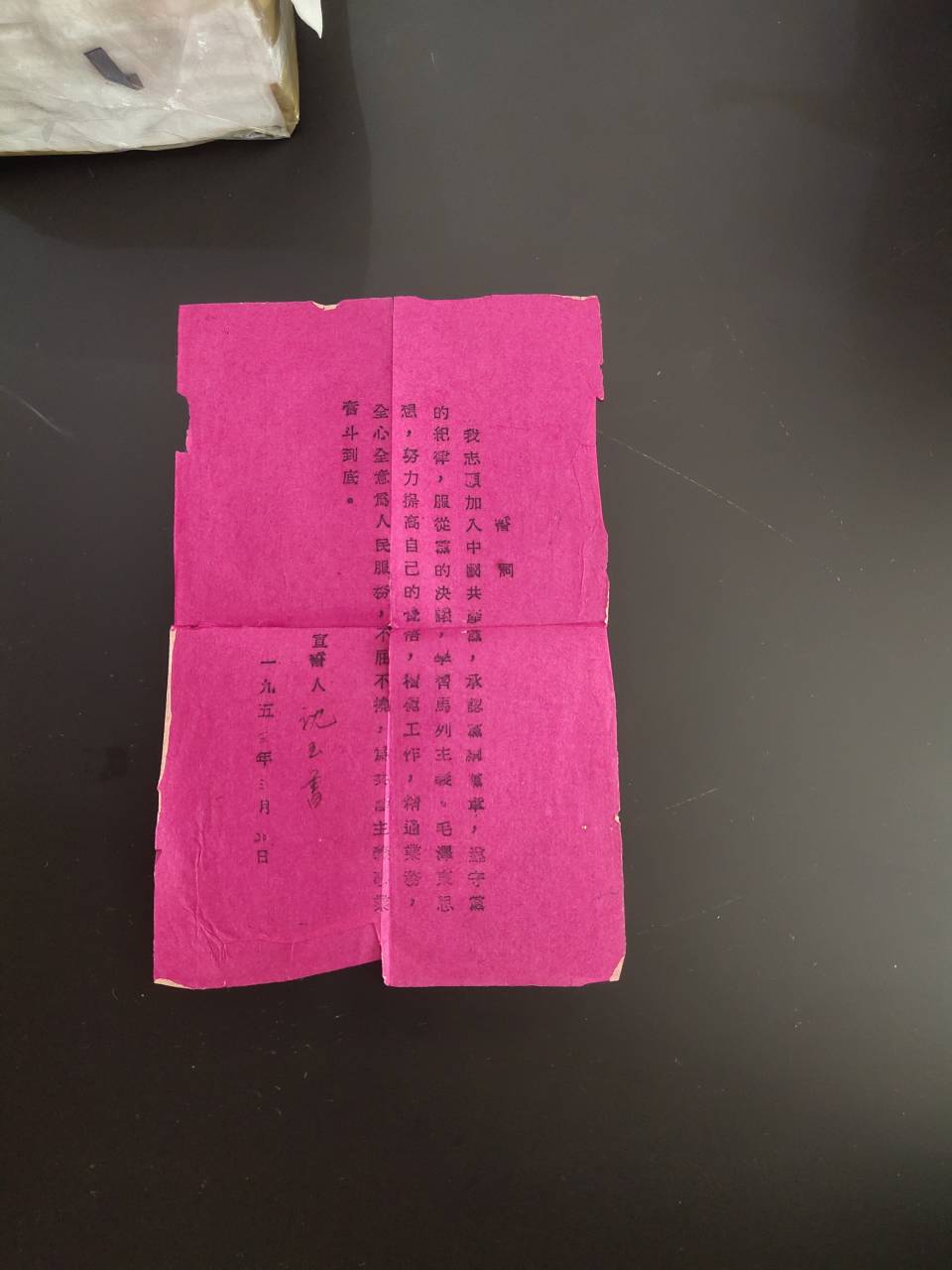 沈老师向同学们展示他的入党申请书