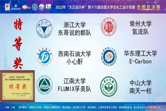 全国大学生化工设计竞赛为教育部全国性A类赛事,由中国化工学会和中国化工教育协会主办,是目前全国高校化工专业级别最高、参赛队伍最多、影响力最大的比赛,在学生科学研究、创新能力和团队协作能力的培养和提升等方面起到了重要作用,已成为我国最具影响力的化工学科大学生竞赛活动。本次竞赛全国共有415所高校的2939支队伍报名参赛,参赛人数近1.5万人。经过西北、西南、华北、华南、华东、华中和东北等七个赛区重重选拔,最终共有60支队伍进入全国总决赛。本届竞赛以“为某大型化工企业设计一座1,4-丁二醇生产分厂或为现有的1,4-丁二醇生产分厂设计技术改造方案”为设计题目,要求技术符合中国绿色低碳发展要求。