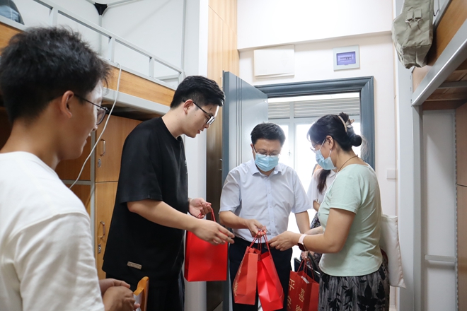 9月6日-9日,正值中秋佳节来临之际,学院迎来了2022级研究生新生。作为东氿校区迎来的第一批新生,学院高度重视此次迎新工作,严格按照疫情防控要求,组织研究生新生报到,确保迎新工作安全、有序进行。迎新报到期间,学院领导班子来到东氿校区进行看望走访,并对新生进行中秋慰问。