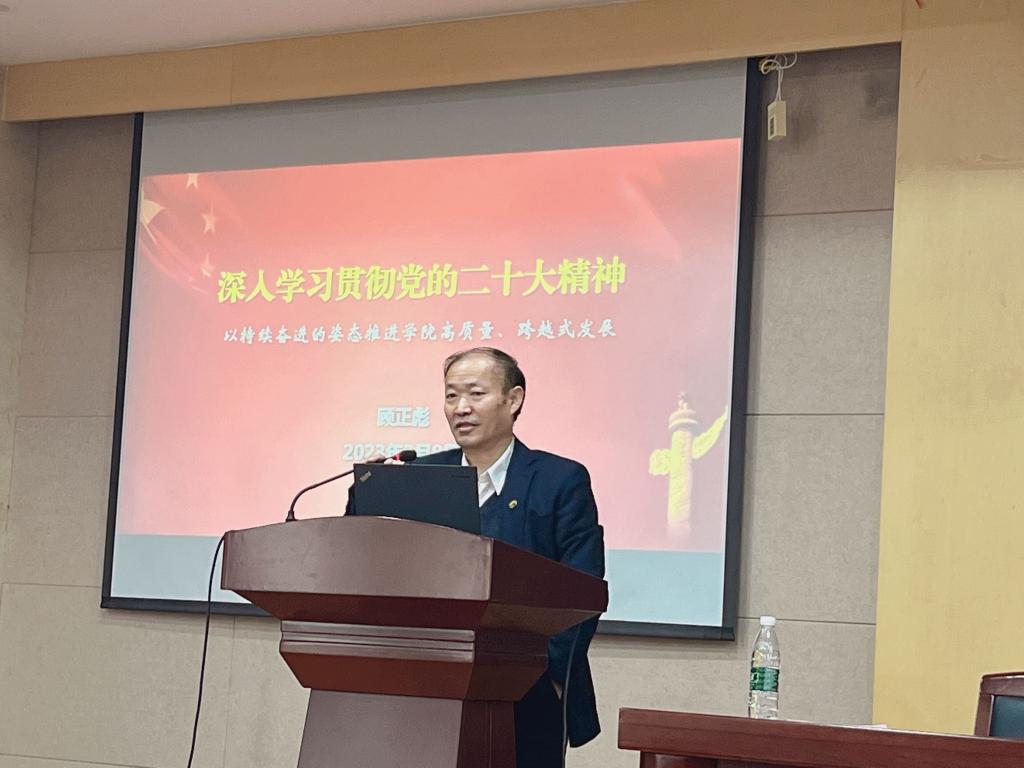 顾正彪在讲课中指出,党的二十大谋划了全面建设社会主义现代化国家的路径,提出了新的教育方略,就建设教育强国、科技强国、人才强国作出了重要部署,强化了教育是科技强国和人才强国的基础支撑。报告在突出位置单独列章,一体部署教育、科技、人才,要求坚持教育优先发展、科技自立自强、人才引领驱动。在教育部2023年工作要点中,增加了大量集中攻坚的“专项行动”和“重大项目”,可以说新的战略机遇期已经到来。面对新定位新部署,不少兄弟高校都在进行积极布局。他结合学校近年来的改革发展,号召大家一定要树立“机遇意识、危机意识、改革意识、创新意识”,系统谋划、有效应对全新挑战,精准把握关键窗口期,在战略必争领域打造新优势新高地。