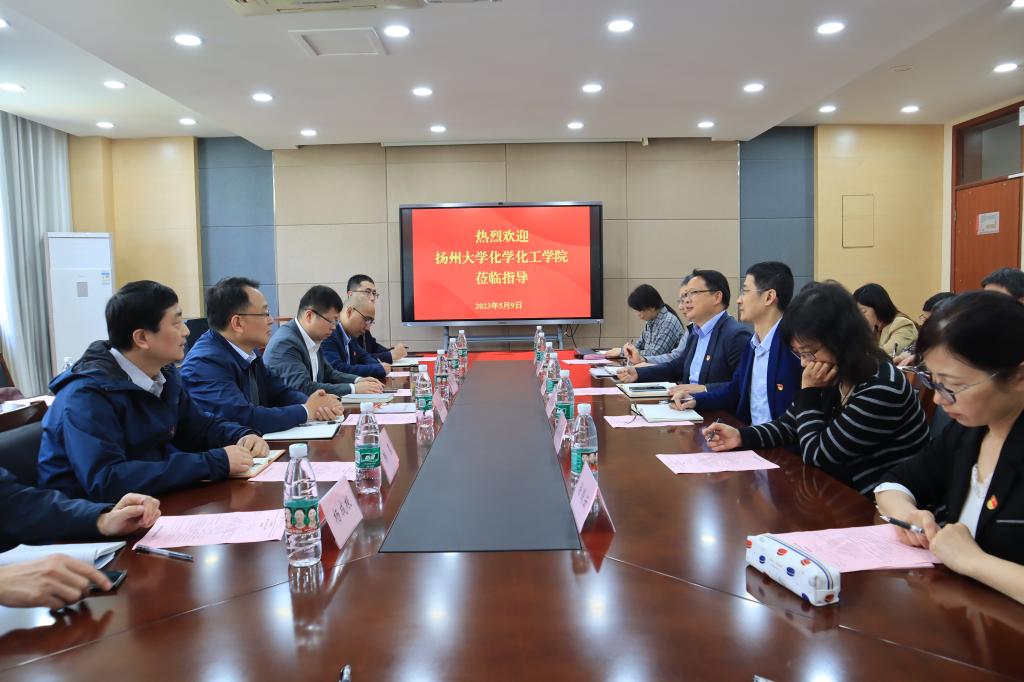教学中心刘湘主任、化工原理课程组长涂国云、物理化学课程组长高海燕、有机化学原课程组长储鸿、无机及分析化学课程组长李玲等骨干教师与扬州大学来访人员就实验室建设、化学竞赛组织等具体事项做了详细的介绍和交流。会场上大家畅所欲言,气氛十分活跃。董玉明带扬州大学化学化工学院庞欢院长一行业务骨干参观了实验室,并对一些装置和设备的使用做了现场演示。