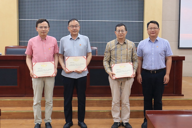 优秀共产党员、优秀党务工作者、示范性基层党组织》的决定。大会对做出突出贡献的党务和思想政治工作先进集体与优秀个人进行表彰。授予罗静、刘冰等13位同志“优秀共产党员”;授予施冬健、周小兰等5位同志“优秀党务工作者”;授予应化系党支部、材料系学生党支部、化工系学生党支部“示范性基层党组织”荣誉称号。在场领导嘉宾为获奖党员和党支部颁发了荣誉证书。