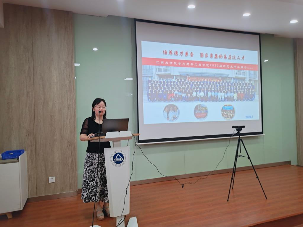的历史沿革、学科建设、师资队伍、科学研究、社会服务、学术影响、人才培养和国际交流等方面进行了详细介绍。学院党委副书记董霞老师对来自全国各地的同学们表示热情欢迎,并详细介绍了学校及学院奖助政策、毕业生就业升学、学校基础设施情况。辅导员李晓洁老师介绍了学校东氿校区的基础设施建设、学生科研学习生活以及人文建设等情况。2022级化学工程专业硕士研究生项巧怡同学、2022级91视频