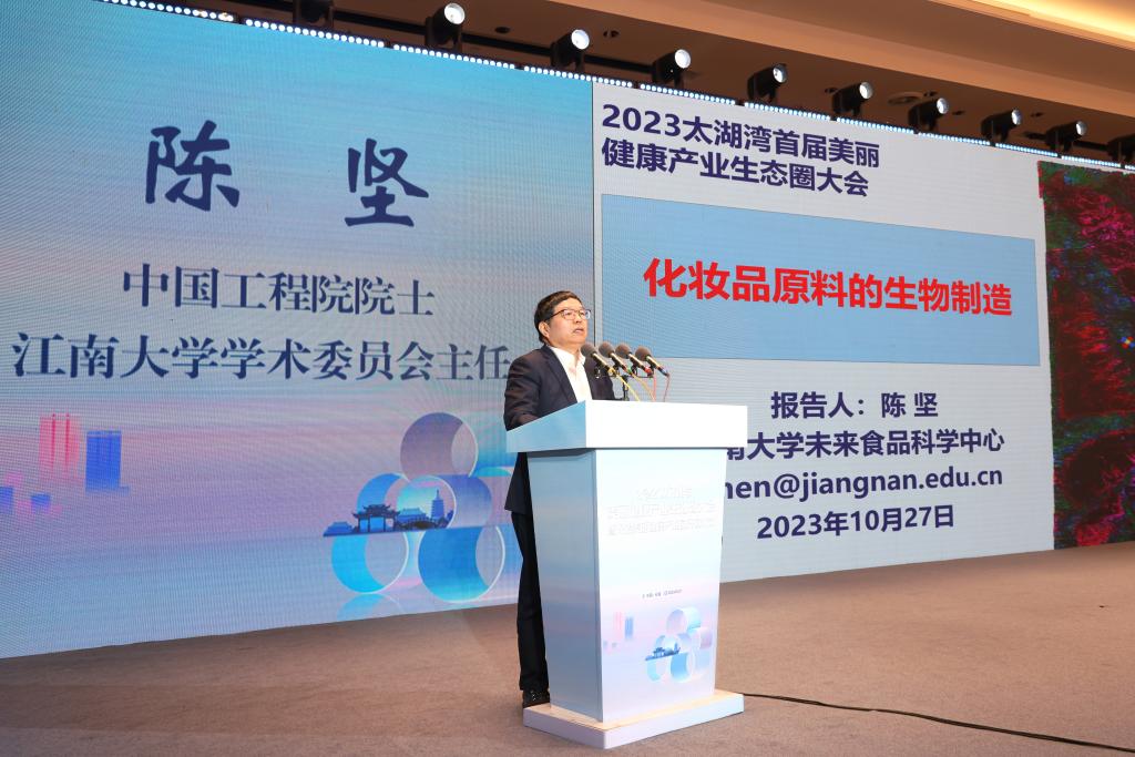 学术委员会主任陈坚作《化妆品原料的生物制造》主题报告