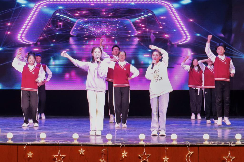 化工2301班以歌曲《等你来》拉开了晚会帷幕。青春的声音与轻快的节奏完美结合,瞬间点燃同学们的激情。