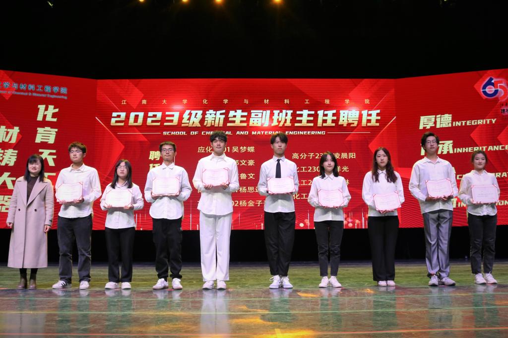 取得的成就。他寄语学院全体同学坚定理想信念,坚守奋进之志,并预祝本次晚会圆满成功。董霞宣读2023级新生副班主任聘任决定,并为副班主任颁发聘书。