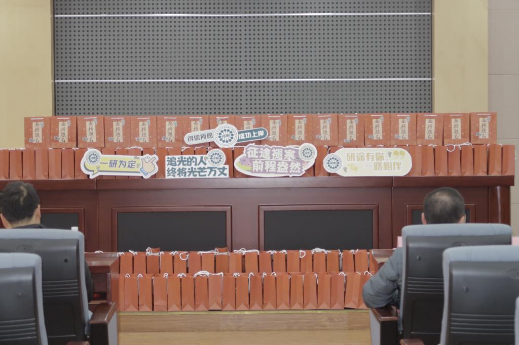 随后,潘庆伟、董霞及各班班主任为考研学生分发“考研加油能量包”。能量包中包括印有“化育天工”印章的专属明信片、江南化工人定制可乐、考研上岸日历、“考研加油”桌面摆件、“好事发生”零食花生等蕴含祝福的礼品。每一份礼品都满含着学院最真挚的期许与关怀。现场的同学们纷纷表示,来自学院的暖意让他们深受感动,更加坚定了他们考研的决心和信心。
