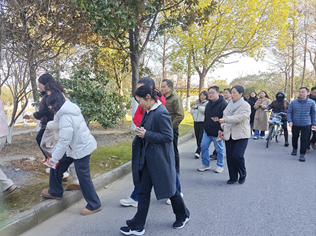 此次新春游园会由徒步活动拉开精彩序幕。老师们手持精心设计的游园打卡门票,从学院门口有序出发,一路兴致勃勃地途径素质拓展中心、充满文化底蕴的小蠡湖学海无涯广场、承载着历史记忆的赤马咀遗址等校园地标。在这个过程中,老师们不仅完成了打卡任务,集齐了寓意美好的“新年快乐”游园卡,还沐浴着冬日温暖和煦的阳光,结伴而行,漫步在小蠡湖旁。沿途的校园美景如诗如画,让老师们陶醉其中,欢声笑语在湖光山色间不断回荡,仿佛为这冬日的校园奏响了一曲欢快的乐章。