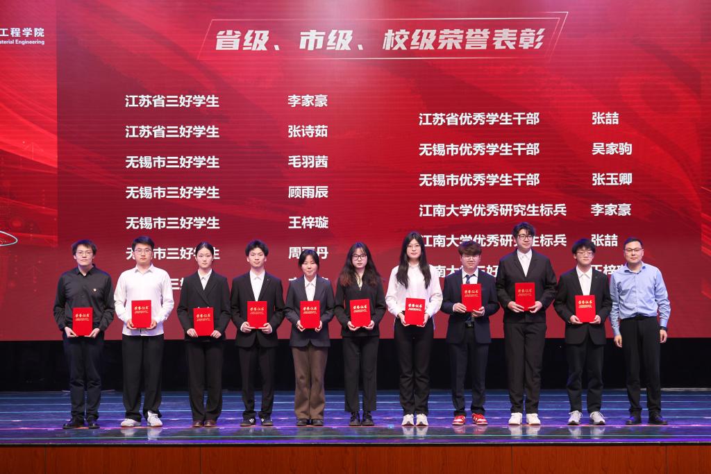 董霞宣读先进学生个人、优秀运动员、先进集体及各项企业奖学金获奖名单,学院领导及企业代表为获奖学生和集体颁发荣誉证书,受资助学生为捐资助学企业送上感谢信。学生代表陈着、陈丹萍、罗俊豪、丁金钰发言。他们结合自身或集体的成长历程,讲述了在院校引导、团队带领、企业贤达帮助下,实现的一次次突破和跨越,并呼吁广大同学以更加饱满的精神状态和一往无前的奋进姿态逐梦江南,助力深化本研学风建设。