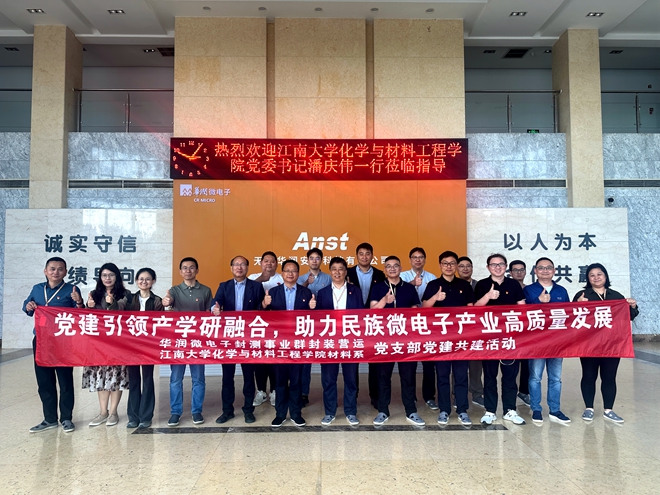 材料系党支部与华润微电子封测事业群封装营运党支部在华润安盛科技有限公司第一会议室举行党建结对共建签约仪式,以党建为桥梁推动校企深度合作,服务教育强国建设,为民族微电子产业高质量发展注入新动能。化工学院党委书记潘庆伟、华润微电子封测事业群党委书记费锐,双方党支部党员代表及业务骨干参加签约仪式。