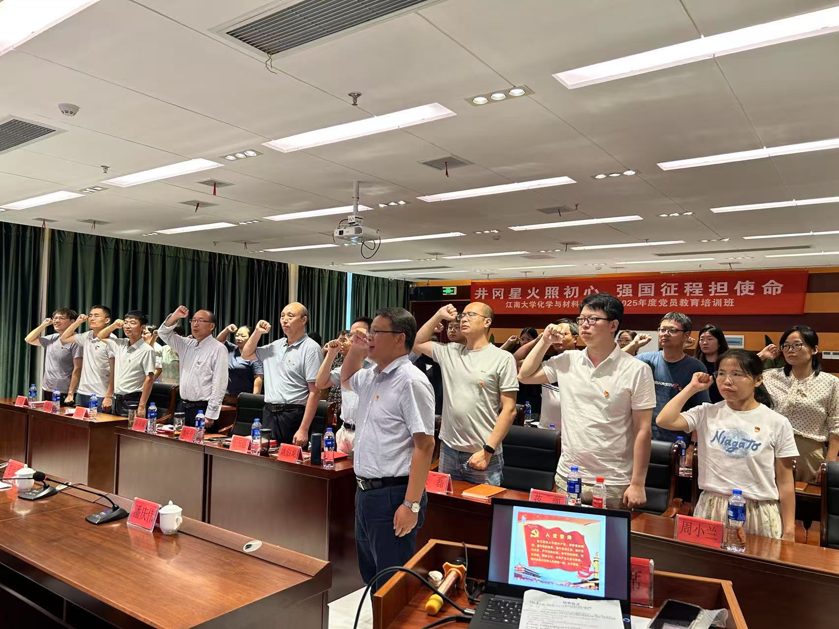 结业仪式上,学院党委委员丁玉强、辅导员高静、博士生第二党支部书记李家豪三位学员分享了学习收获和体会。师生们纷纷表示深受革命洗礼,内心极为震撼,作为新时代的共产党员,将不断学习、继承和发扬好井冈山精神,以坚定的决心和信心奋进新征程、建功新时代,为加快建设教育强国贡献智慧和力量。最后,在潘庆伟同志的带领下,全体学员重温入党誓词,铿锵有力的入党誓词回荡会场,传承着共产党员的赤诚初心和坚定信仰。