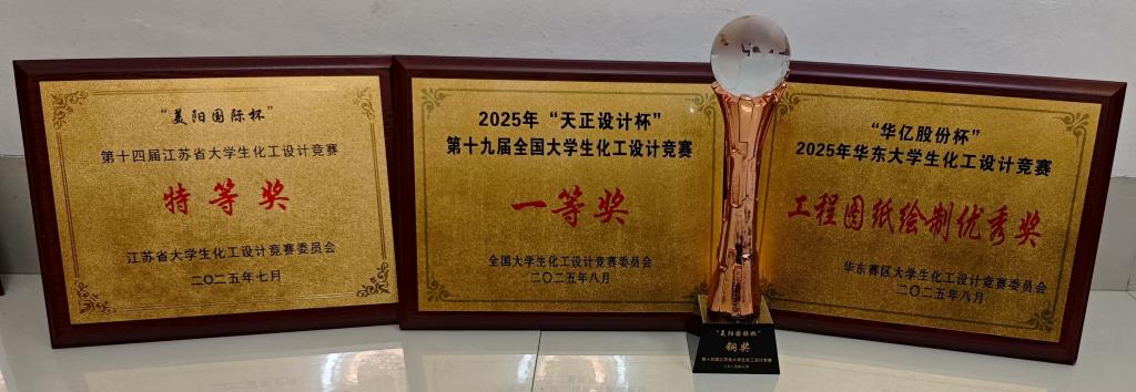 本次赛题发布后,学院积极动员学生,共组建19支队伍,2022级化工专业学生全员参赛。历经5个月的不断打磨与完善,最终获得全国一等奖1项、二等奖1项、三等奖4项;华东赛区特等奖1项、二等奖1项、三等奖7项;江苏省特等奖2项、二等奖16项。