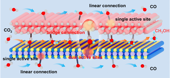 全球对化石燃料的需求持续上升,正以惊人的速度消耗这些有限的资源,并导致强效温室气体二氧化碳(CO2)的过度释放。解决这些挑战最有希望的策略之一是将排放的CO2转化为高价值的化学品和燃料,最大限度地利用这一资源。利用太阳能驱动CO2还原由于其可持续性和环保性而受到广泛欢迎。在不同的光还原化学物质如一氧化碳(CO),甲烷(CH4)中,甲醇(CH3OH)因可作为许多具有商业价值的化学品的前体,且液态形态有利于其分离和运输从而脱颖而出。然而由于惰性的CO2分子中C=O的高解离能(~750 kJ mol-1),其转化仍然是一个重大挑战。特别是由于CH3OH的生成需要六电子转移并保留一些C−O键,同时激活高度稳定的C=O键,因而是一个重要挑战。在CO2光还原过程中,复杂的质子–电子转移途径很容易分叉,导致其他副产物的形成,这极大地阻碍了CH3OH的产生。因此,开发一种新型催化剂对于调整质子–电子转移途径和光还原CO2制CH3OH至关重要。