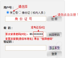 财务处”,在“业务办理”中选“学生缴费”。考生账号已开通,切勿自行注册。复试收费标准:80元/生(仅申请考核考生,硕博连读考生无须缴费)。用户号选择“学工号”,输入正确的身份证号。缴费系统初始密码(8位)为大写字母“BS”加准考证编号后6位(准考证查看网址://yzgmis.91sphd.com/zsgl/bswb/login.aspx),如“BS123456”。非首次登录缴费系统的考生(含往年报考考生及误注册考生)使用“找回密码”,登录并缴费。