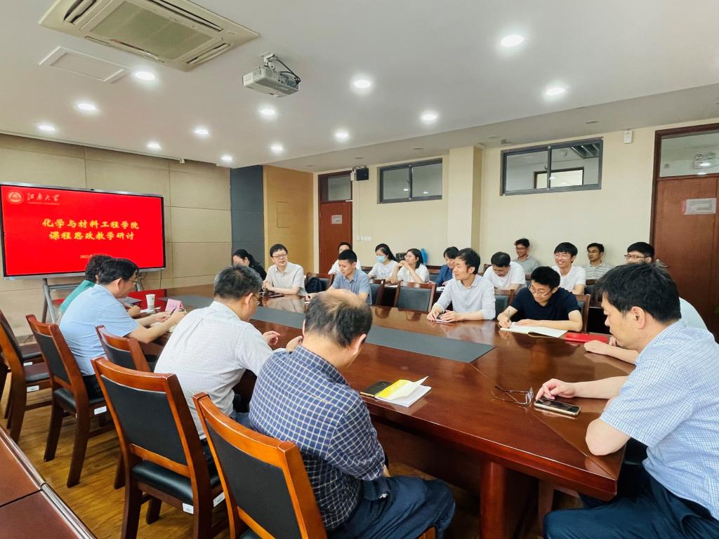 研讨会上,夏碧华老师分享了东为富教授参加第二届全国本科院校化工类专业教师课程思政能力竞赛的准备过程及比赛经验;钮腾飞老师作题为《创新驱动下的课程思政》交流分享;丁玉强老师传授了如何在平时的教学中融入课程思政的教学经验。教师们表示,专业课程是“本”,课程思政为“用”,教师要将专业知识传授与思想政治教育有机融合,发挥课堂主渠道功能,既要给予学生严格的学科基础训练,又要融入课程思政,达到润物细无声的效果。
