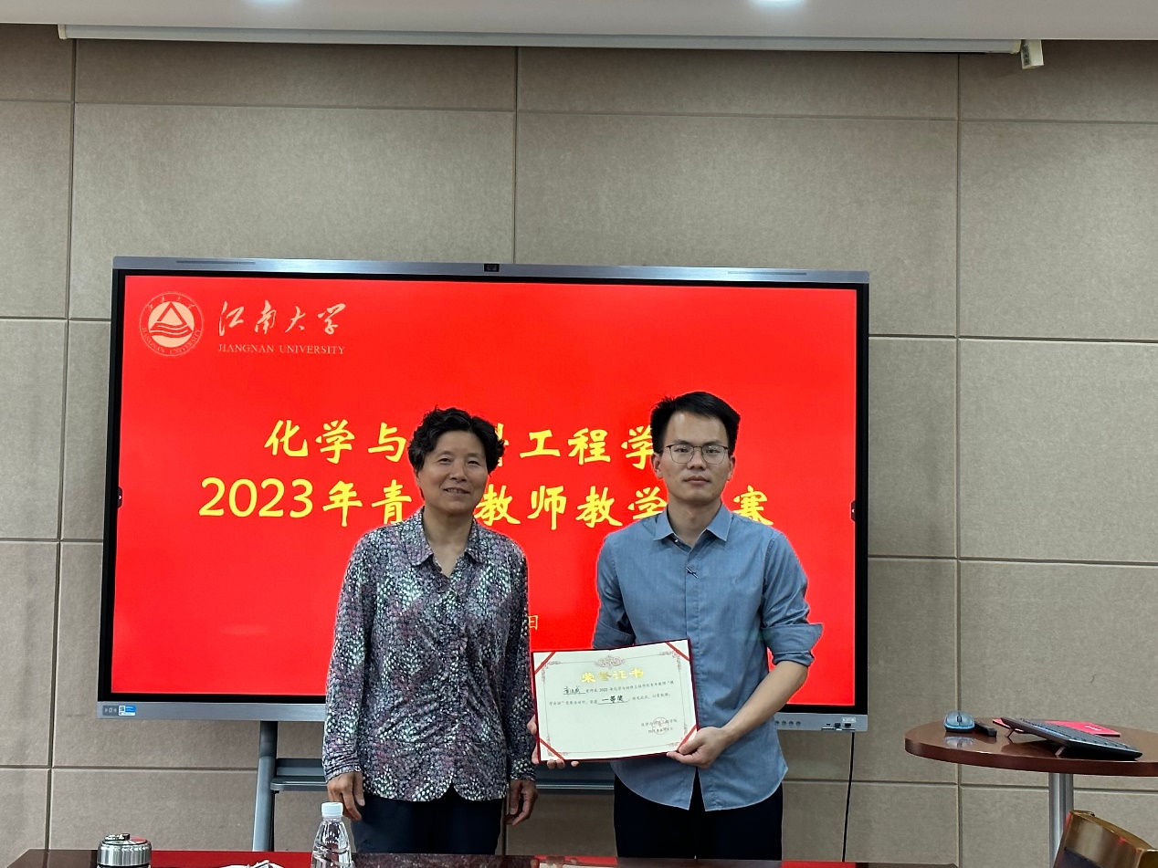 化工学院教学中心主任刘湘给教学竞赛三等奖老师颁奖