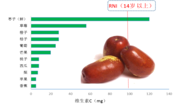 多数新鲜水果含水量85%~90%,富含维生素C、钾、镁和膳食纤维(纤维素、半纤维素和果胶)。红色和黄色水果(如芒果、柑橘、木瓜、山楂、沙棘、杏、刺梨)中b-胡萝卜素含量较高;枣类(鲜枣、酸枣)、柑橘类(橘、柑、橙、柚)和浆果类(猕猴桃、沙棘、黑加仑、草莓、刺梨)中维生素C含量较高;香蕉、黑加仑、枣、红果、龙眼等的钾含量较高。成熟水果所含的营养成分一般比未成熟的水果高。