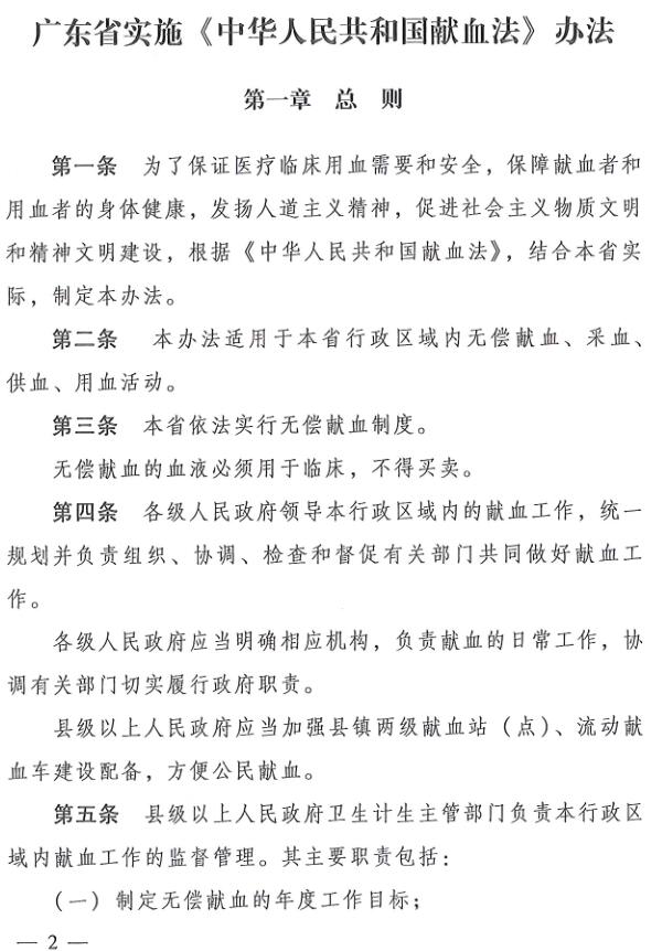 名 称: 广东省实施《中华人民共和国献血法》办法